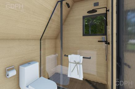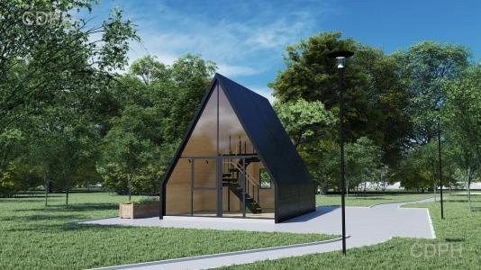 Den triangulära byggnaden är en modulär bygglösning som är utformad för hotell, boenden och andra liknande utrymmen. Huvudkonstruktionen är av stål, med färdigmonterade väggar från fabriken, integrerad in- och utomhusmontage samt snabb montage på plats. Den integrerar intelligent utrustning och är främst lämplig för kulturturistiska campingplatser och kommersiella tjänstprojekt.